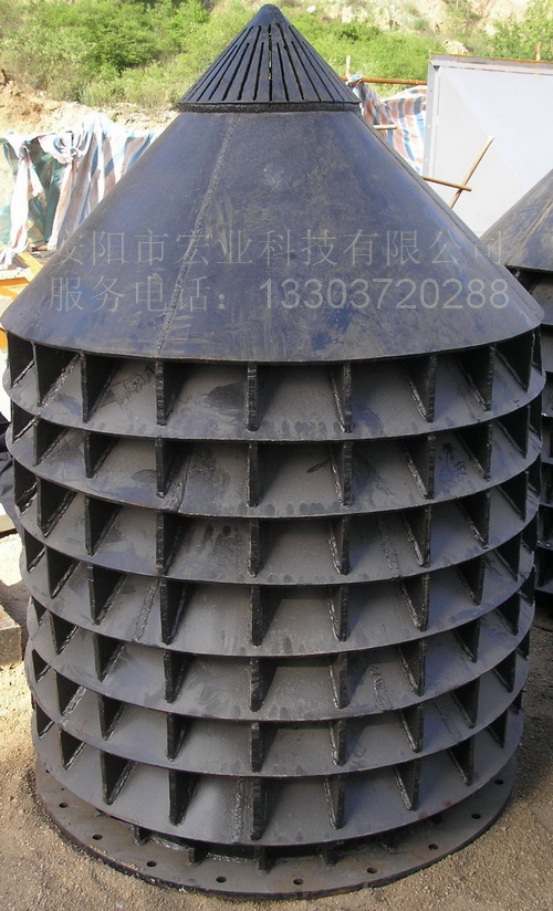活性石灰豎窯在煅燒過程中,供風(fēng)的大小和均勻程度,對石灰的活性度和燒結(jié)的生熟均勻至關(guān)重要,如果風(fēng)不均勻就會出現(xiàn)偏燒,以至使過燒和燒不透現(xiàn)象發(fā)生,大大影響了活性石灰的質(zhì)量。我公司研制的計算機仿真風(fēng)帽吸取了國內(nèi)外的經(jīng)驗,結(jié)合原燃料(石灰和焦炭)的質(zhì)量和塊度的大小,用計算機作概率仿真設(shè)計風(fēng)帽。概率仿真風(fēng)帽是一種新型的供助燃風(fēng)的一進(jìn)風(fēng)帽,助燃風(fēng)從下口環(huán)形進(jìn)入,然后通過筒壁若干個風(fēng)孔出口進(jìn)入爐膛,所鼓風(fēng)經(jīng)風(fēng)帽不同孔徑的風(fēng)口和不同高度可使所送風(fēng)壓風(fēng)量概率分布到窯內(nèi)整個截面。